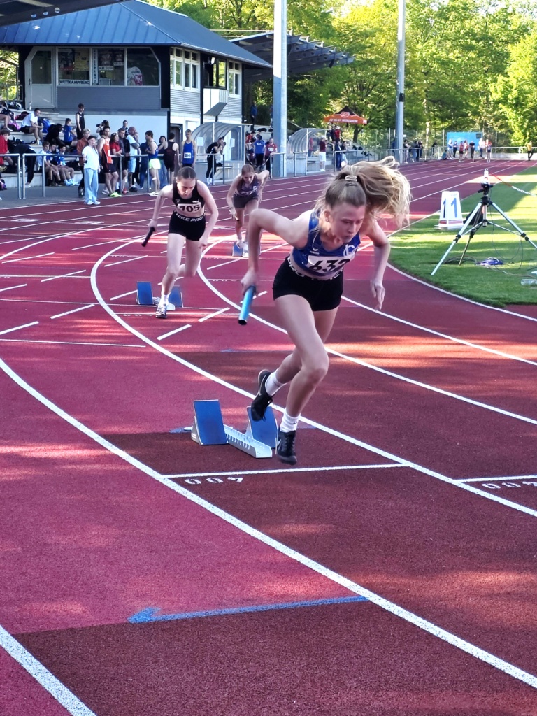 Am Ende des Tages kamen noch die Staffeln zum Zuge. Hier schaffte die LG Kurpfalz Staffel 1 mit Lea Keller, Lotta Mühlinghaus, Alessia Kott und Nieke Peste (alle wU16) in 55,25 Sekunden Platz 3 für 4× 100 Meter.